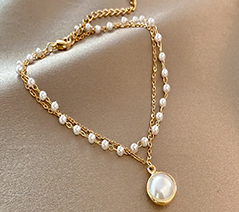 Double Crystal Pearl Ring Gold Plated Open Ring