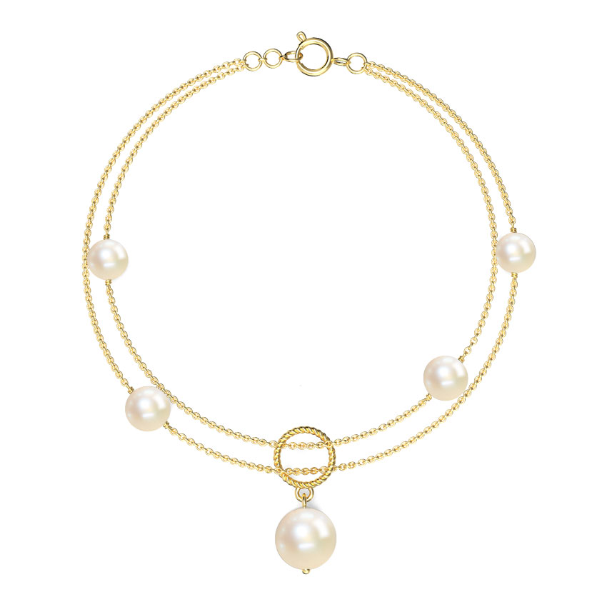 Double Crystal Pearl Ring Gold Plated Open Ring